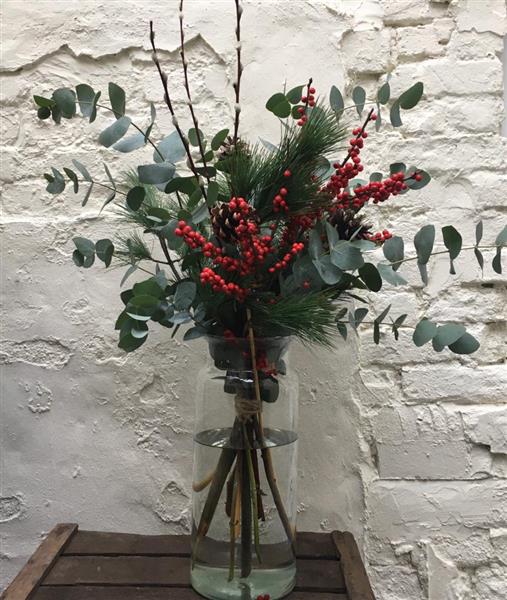Eucalyptus and pine with a splash of festive berries make this bunch... Festive!